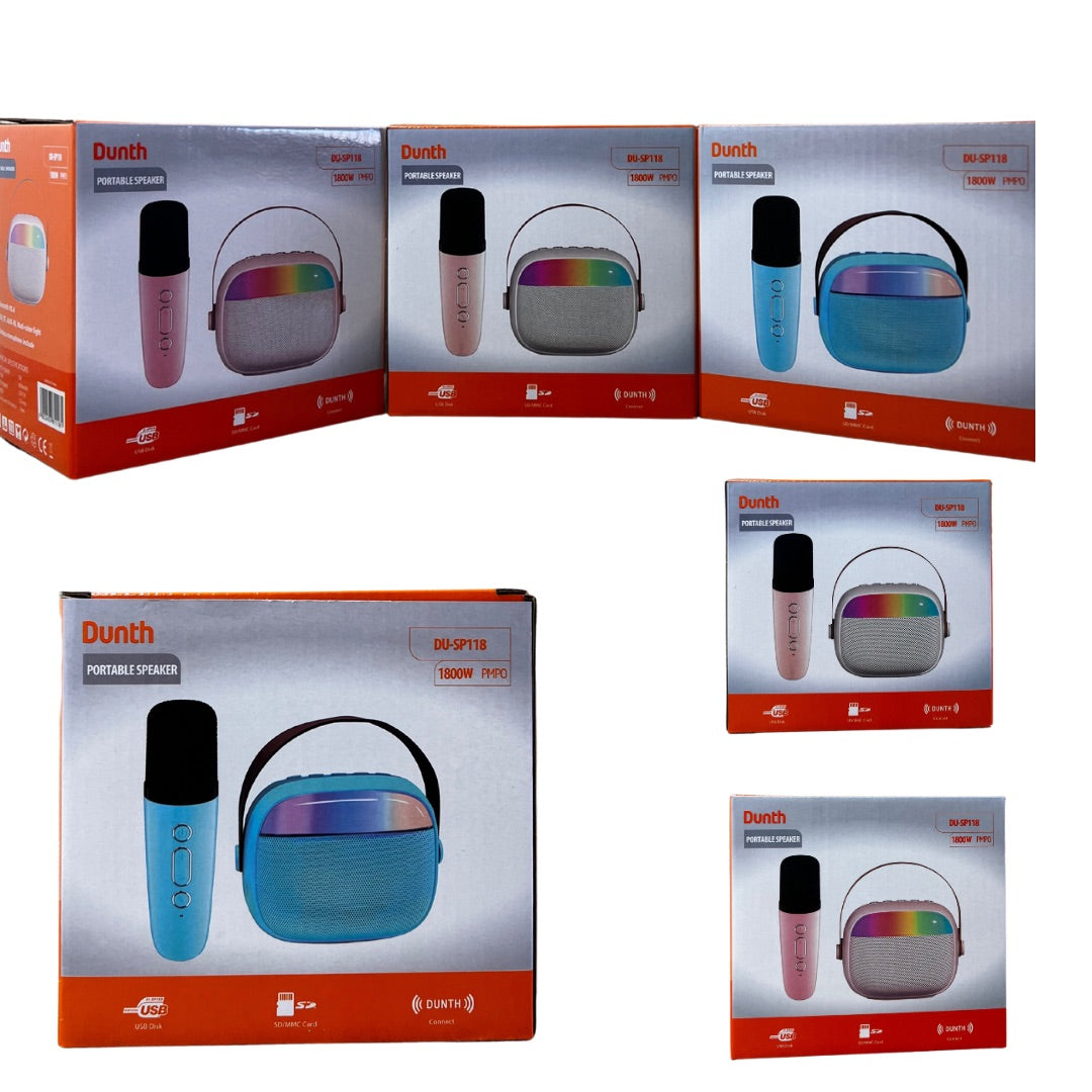 استمتع بتجربة موسيقية عصرية ومبهرة مع مكبر الصوت Bluetooth من علامة DUNTH، المصمم بإضاءة LED بتأثير اللهب المتغير الألوان داخل السماعات المزدوجة 🎶✨، ليمنحك صوتًا قويًا وشكلاً أنيقًا في نفس الوقت.